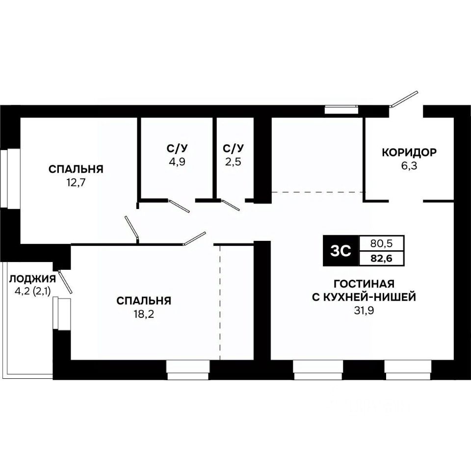 Общая площадь82,6 м²
