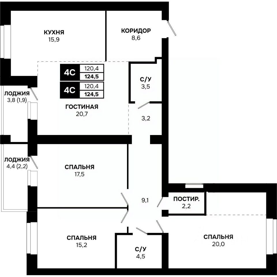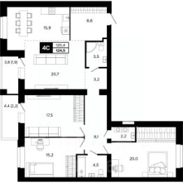 Общая площадь124,5 м²