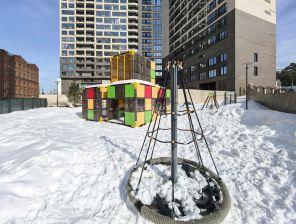 - Придомовая территория благоустроена: оборудованы две детские игровые площадки и есть велопарковка