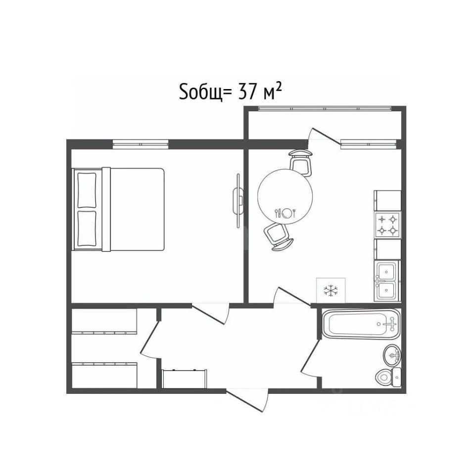 - Общая площадь 37 кв.м.