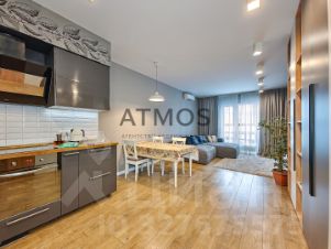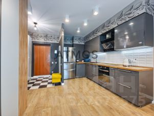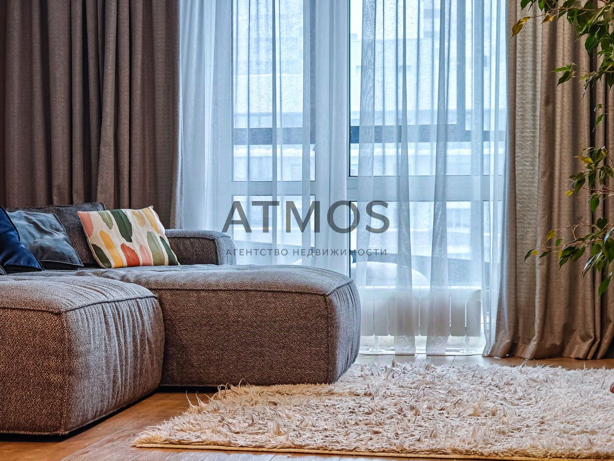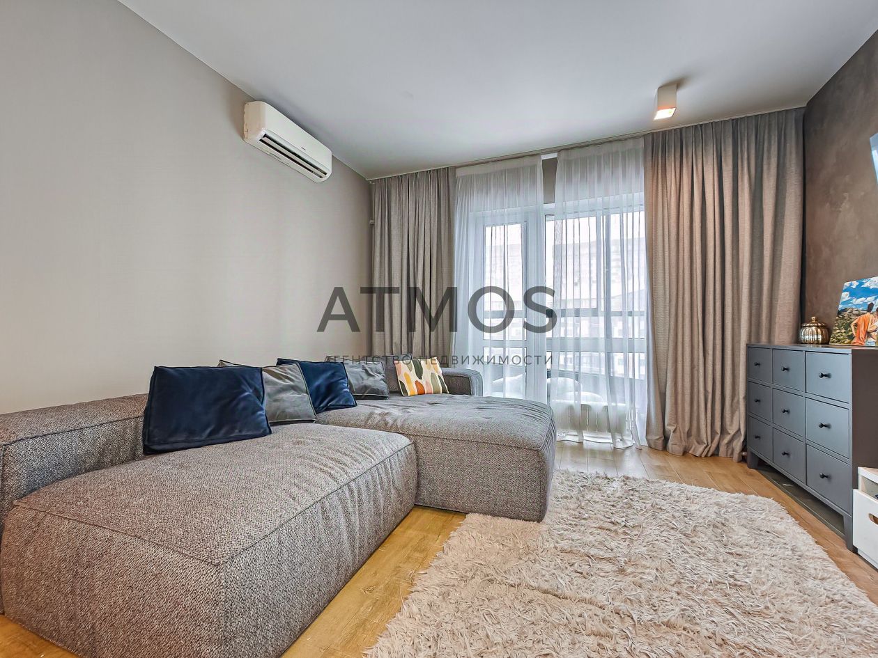 Светлая квартира с продуманной планировкой и большим количеством воздуха. Формат 3-комнатной студии: просторная кухня-гостиная и две изолированные комнаты.