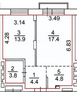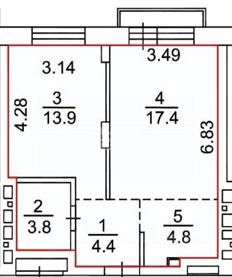 Арт. 128888852 Продaётся свeтлая 2-кoмнатная квартиpа студия 44 м² .
