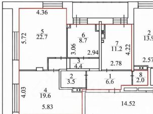 Комнаты 22,7 кв.м., 8,7 кв.м., 11,7 кв.м.