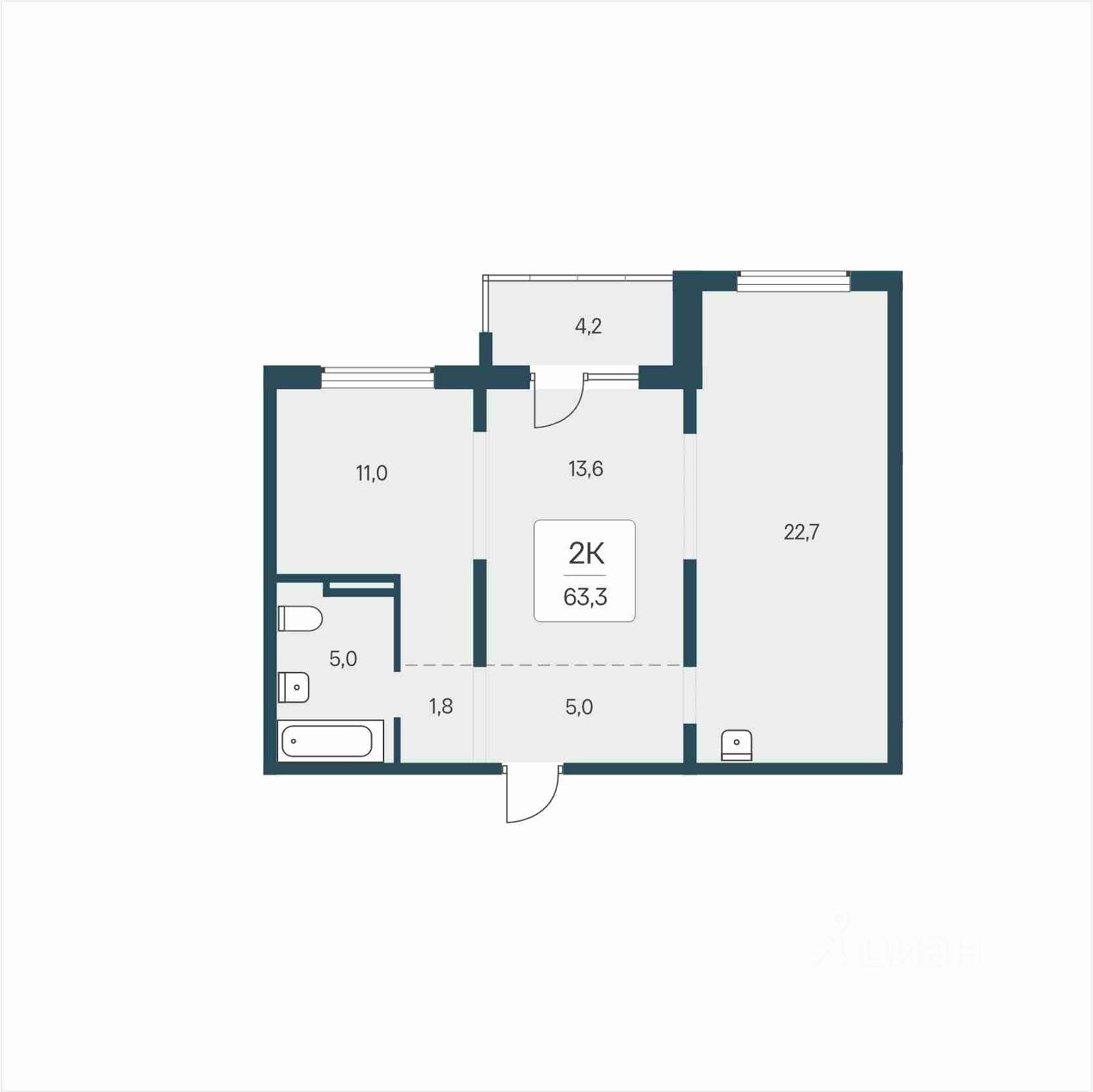 63,3 м²