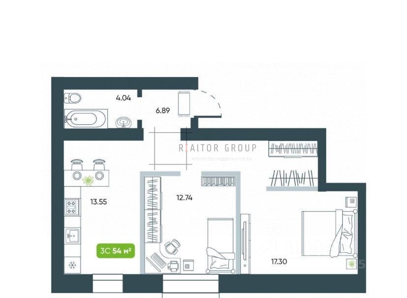 54 м²
