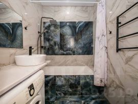 В квартире выполнен качественный ремонт. На всех окнах установлены жалюзи. Горизонтальная разводка отопления (теплый пол).
