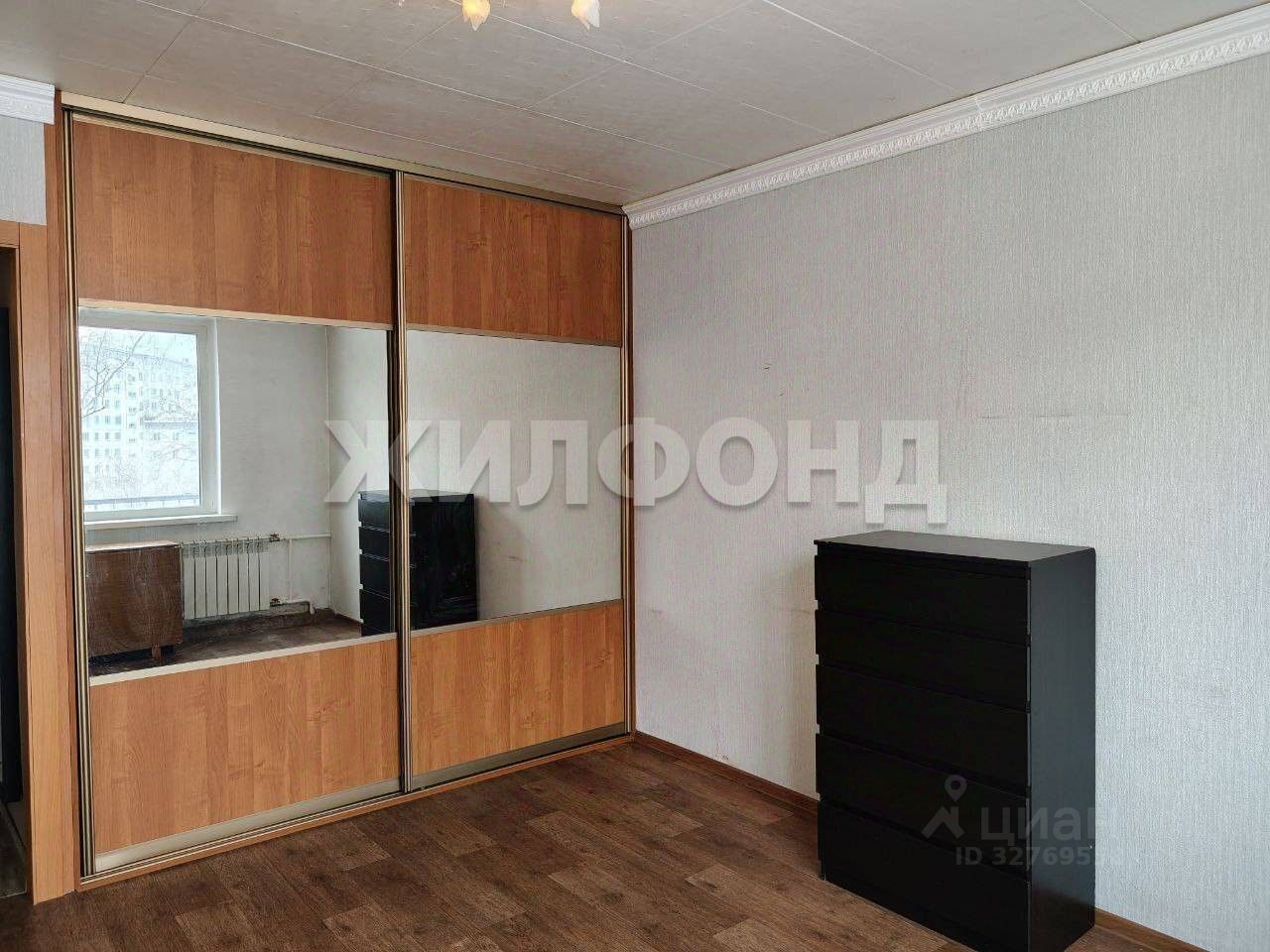 В квартире остается большой зеркальный шкаф-гардеробная, кухонный гарнитур, холодильник, электропечь и стиральная машина.