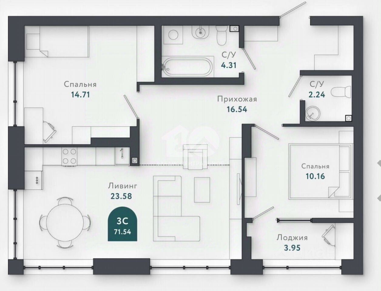 Идеальное решение для семей с детьми и выгодное вложение для инвесторов. Просторная квартира площадью 71,5 кв. м расположена на 19 видовом этаже кирпичного дома.