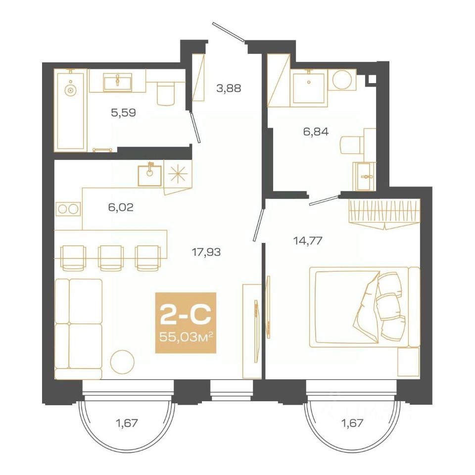 Общая площадь55,03 м²