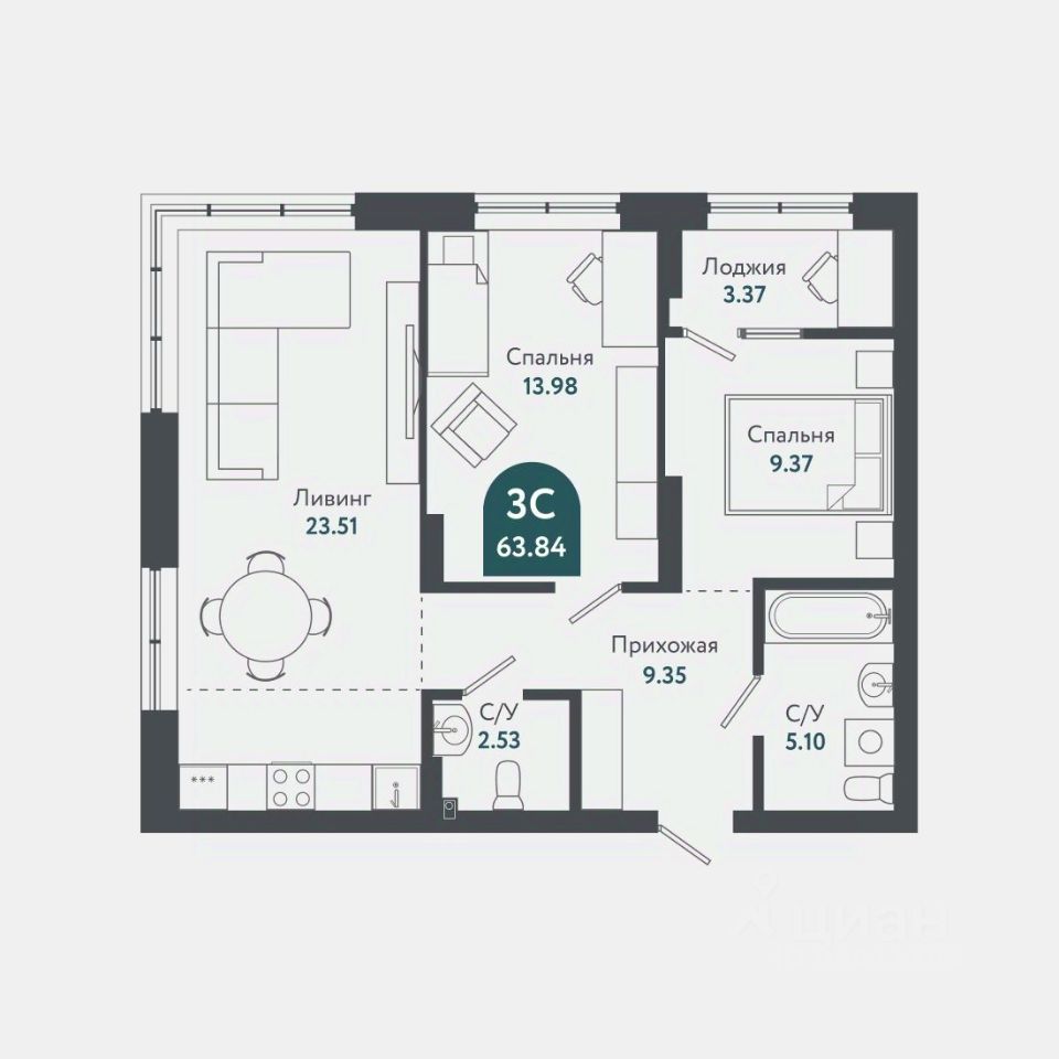 эргономичные планировки квартир с площадью от 37 до 71,5 кв.м.