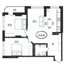 • Общая полезная площадь = 71 м², включая лоджию 3,6 м².
