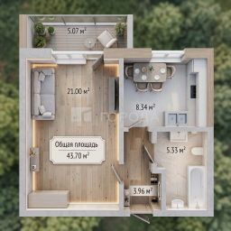 Общая площадь: 43,7 м²