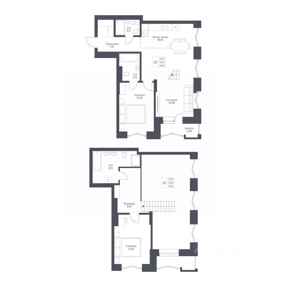 Общая площадь96,92 м²