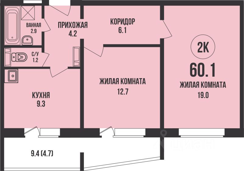 Общая площадь60,1 м²