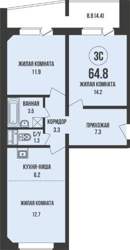 Общая площадь64,8 м²