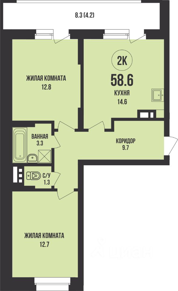 Общая площадь58,6 м²