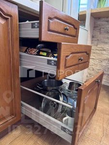 Кухня: фасады из натурального дерева, фурнитура BLUM