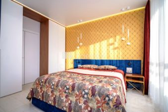 Квартира выполнена по индивидуальному дизайн-проекту с чётким разделением общественных и приватных зон. Центром является просторная кухня-гостиная для семейной жизни и приёма гостей. Изолированные спальня и детская обеспечивают тишину и уединение.