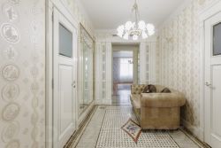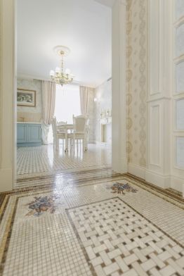 Войдя в квартиру, Вас встречает просторный коридор, где итальянская мраморная мозаика ручной работы, уложенная на полу, словно приглашает в мир безупречного стиля.