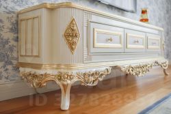 Квартира выполнена в классическом стиле, где каждый элемент, предмет интерьера это произведение искусства, рассказывающий свою уникальную историю. Особое внимание владельцы уделили мебели, изготовленной на заказ ведущими мировыми фабриками (Savio Firmino, Dolfi - Италия, AMC - Португалия) и французскому текстилю. Люстры и бра (Porcellane Villari, FBAI Италия) подчёркивают эксклюзивность и уникальность интерьера. А паркетная доска из Тика и натуральные итальянские ковры из 100% шерсти от Alexander's Collection создают атмосферу тепла и умиротворения.