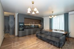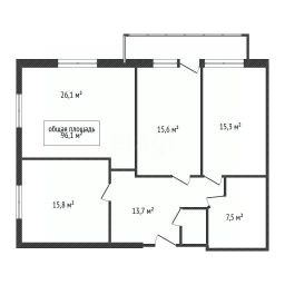 В квартире имеется просторная кухня-гостиная, три спальни, два санузла и большая застекленная лоджия.