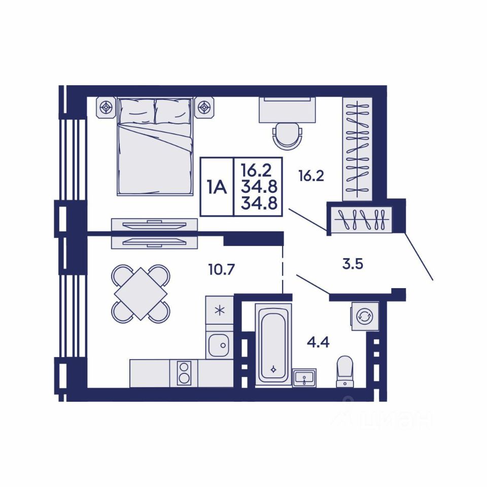 Общая площадь34,8 м²