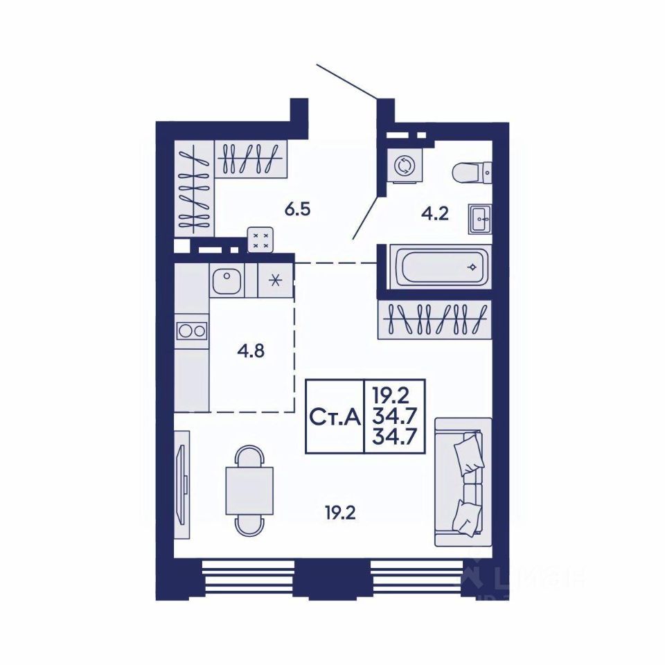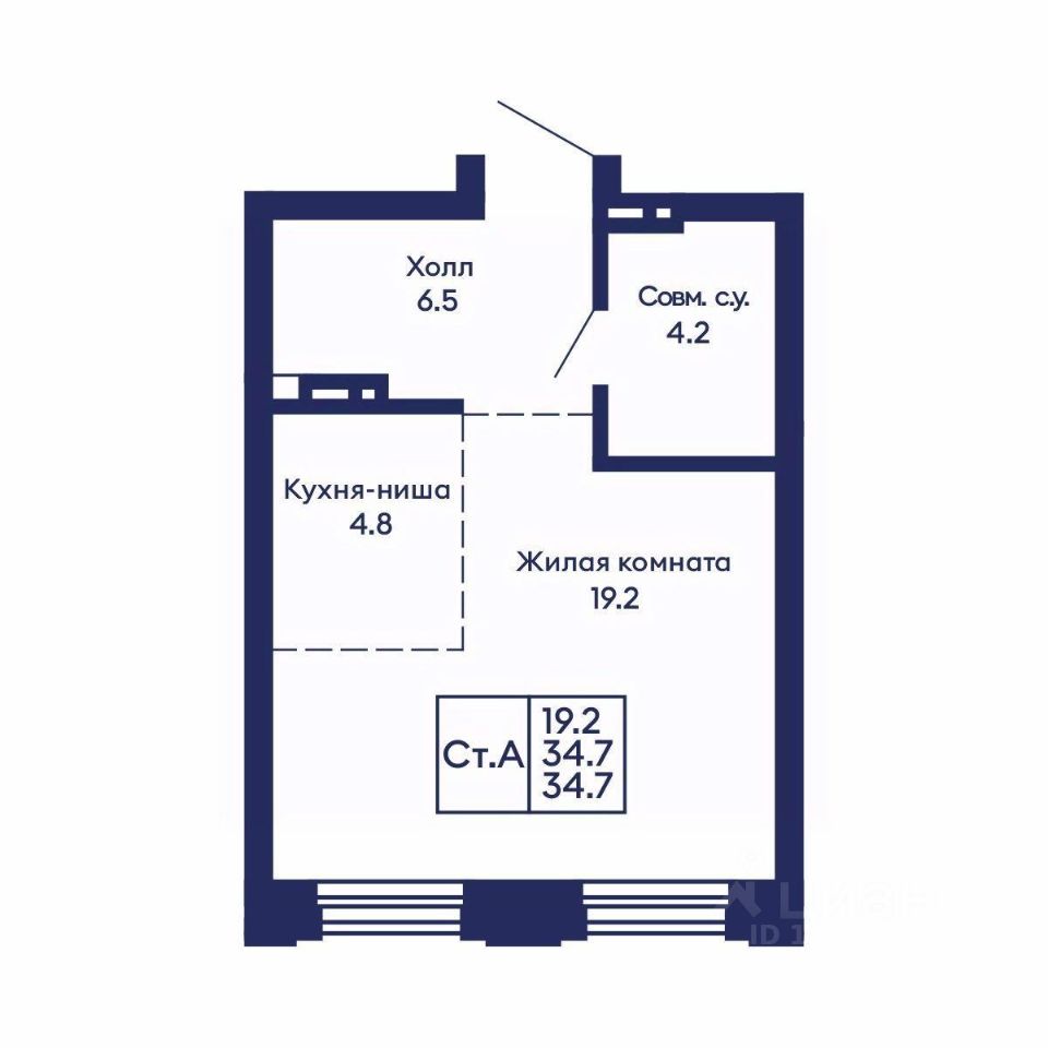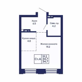 Общая площадь34,7 м²