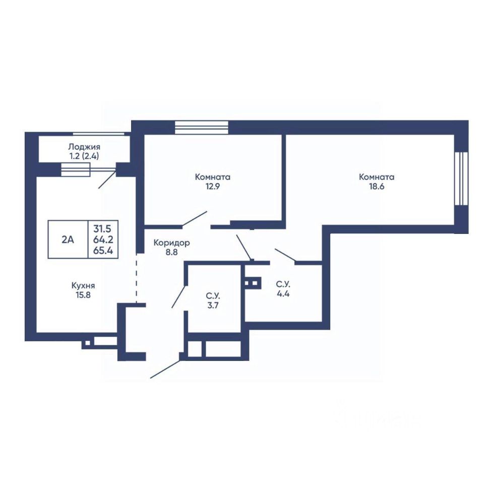 Общая площадь65,4 м²