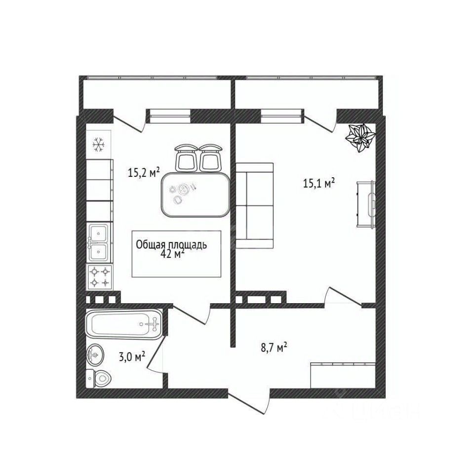 Площадь: 42 м2.