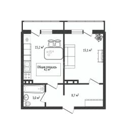Количество комнат: 2.