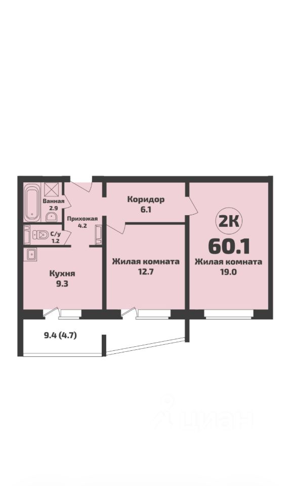 60,1 м²