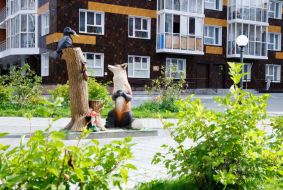 Внутри двора — детские и спортивные площадки, подземный паркинг.