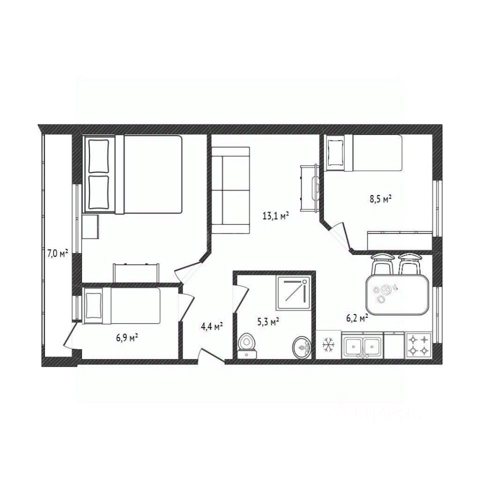 В квартире 3 отдельные спальни, у каждого будет своя комната, гостинная и кухня отдельно