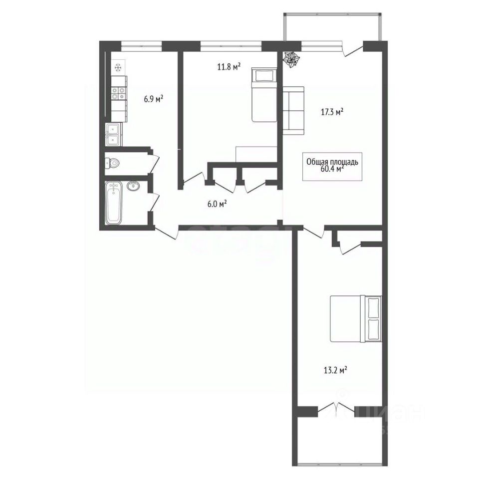 Квартира расположена на комфортном шестом этаже, окна выходят на две стороны, поэтому здесь всегда светло и хорошие виды. Состояние отличное, комнаты изолированные и смежные — удобно для семьи. Санузел раздельный, есть