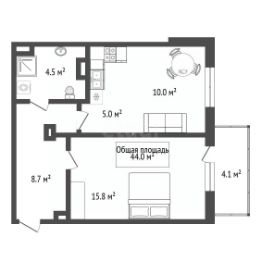 Представляем вашему вниманию уютную однокомнатную квартиру в современном доме 2017года постройки. Квартира расположена на 4 этаже 19-этажного монолитно-кирпичного здания. Общая площадь составляет 44 кв. м, жилая площадь — 27 кв. м, а кухня — 9 кв. м. Высота потолков — 2.7 метра. До метро "Спортивная" всего 15 минут