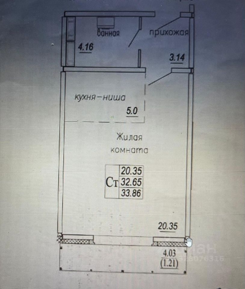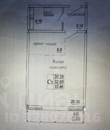 Площадь квартиры 32,65 кв.м., плюс площадь лоджии 4,03 кв.м.