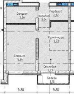 Планировка включает уютную гостиную-кухню с выходом на балкон. В квартире есть отдельная спальня. Гардеробная позволяет удобно организовать хранение вещей, а совмещенный санузел — практичное решение.