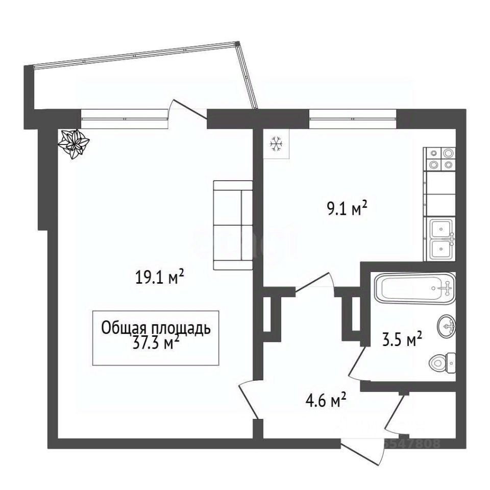 • Площадь квартиры — 37,3 м²