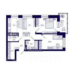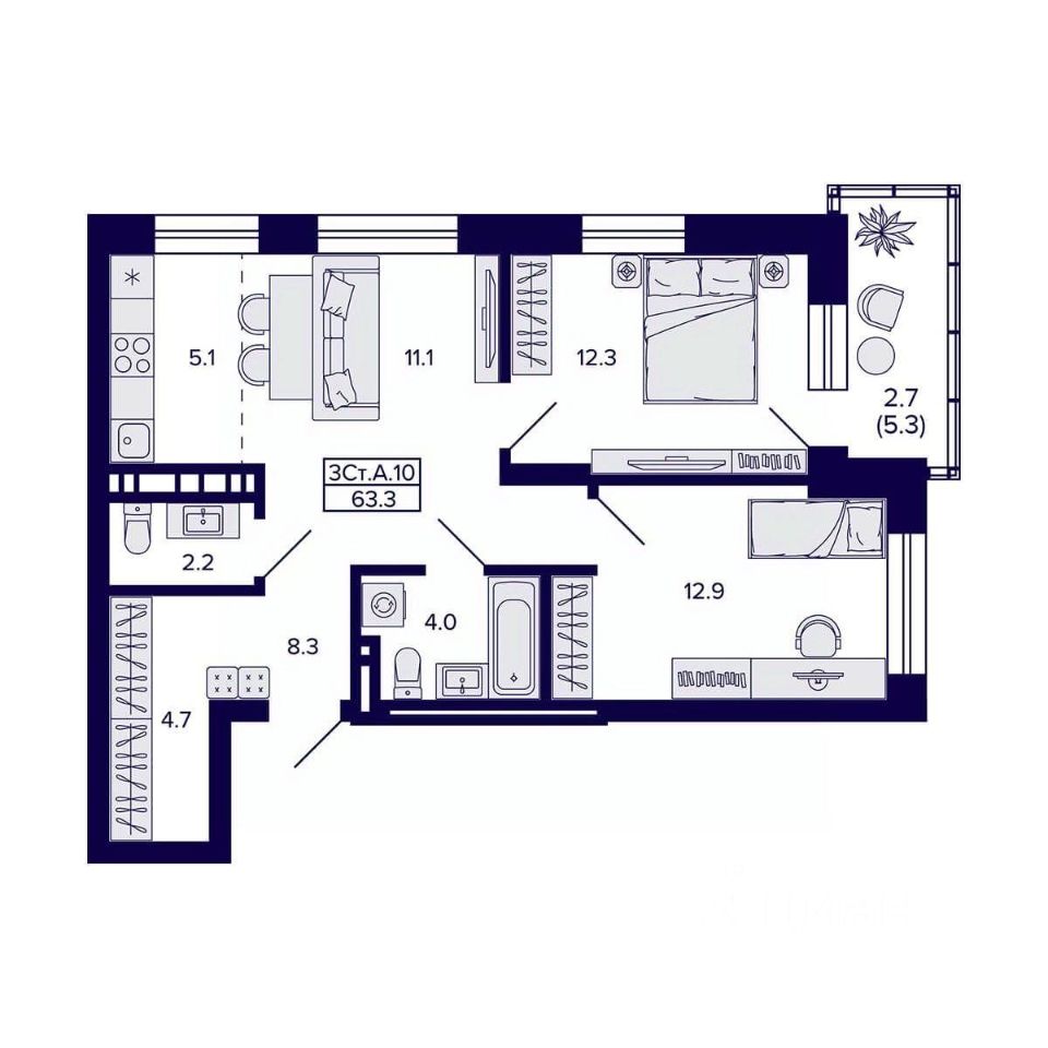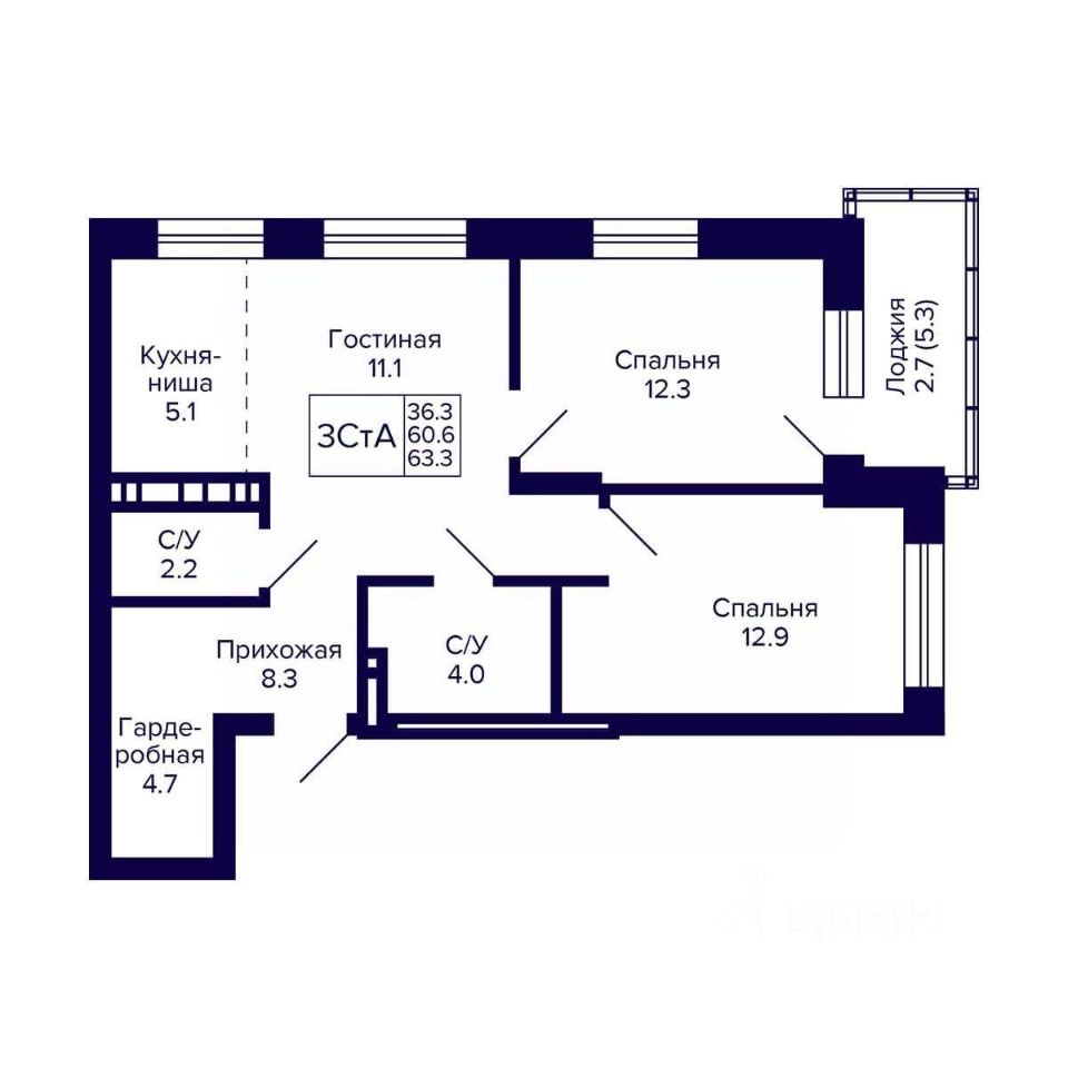 Общая площадь63,3 м²
