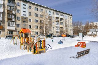 Дом расположен внутри квартала , в стороне от проезжей части.