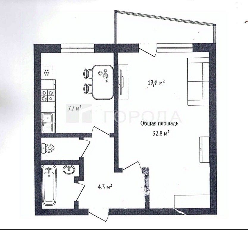 -комната - 17.1 кв.м.