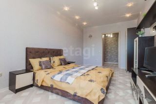 Просторная квартира в кирпичном доме 2017 года постройки — идеальный вариант для комфортной жизни. Просторная кухнягостиная оформлена в светлых тонах с яркими акцентами: это создаёт атмосферу уюта и комфорта. Из окон, в том числе панорамных, открывается вид на улицу — в помещении много света, а днём можно наслаждаться приятным обзором.