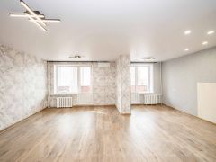 Объект предлагается с качественным современным ремонтом в нейтральных тонах, готовый к заселению. Все окна выходят на озелененную, спокойную дворовую территорию, что гарантирует тишину и приватность. Планировка функциональна и рациональна, позволяя эффективно использовать площадь.