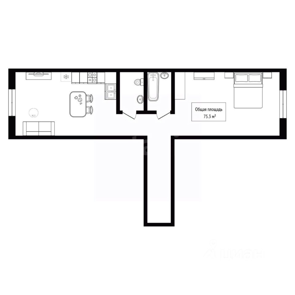 Квартира площадью 75,3 кв. м расположена на четвертом этаже современного кирпичного дома, дом 2014 года постройки.