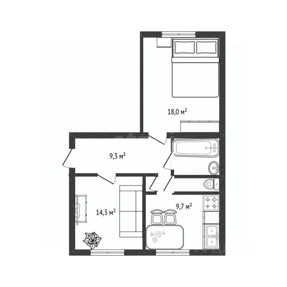 Планировка отличается рациональностью и выгодными характеристиками: окна выходят на две стороны, обеспечивая квартире обилие естественного света и сквозное проветривание, а комнаты имеют правильную квадратную форму, что упрощает расстановку мебели.