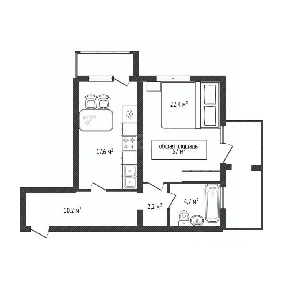 57 м²