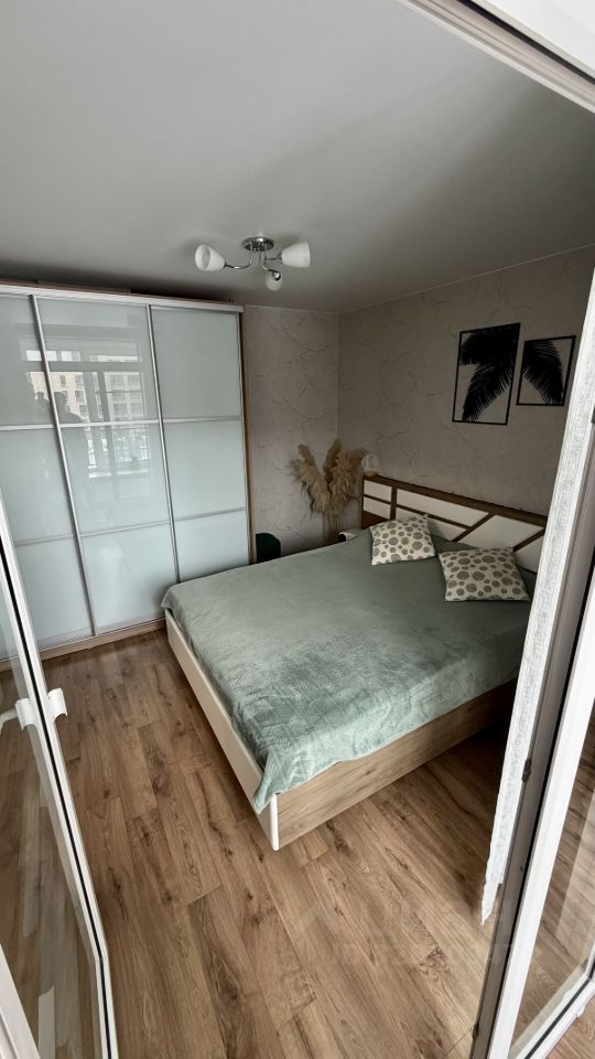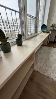 Удобная планировка: кухня-гостиная с кухонным гарнитуром по индивидуальному проекту со шкафами для потолка, обеденным столом и зоной отдыха и сбора гостей. Комфортная спальня с большим шкафом для хранения вещей и достаточным пространством для установки двуспальной кровати шириной 160 см с прикроватными тумбами. Теплая лоджия со встроенным подоконником с полками для хранения, встроенной модульной системой из икеи (рабочий стол+полки для орг техники). Большой совмещенный сан узел со шкафом-колонной, шкафом-зеркалом, подвесной раковиной с тумбой, ванной и полотенцесушителем. Коридор со встроенным шкафом для хранения вещей. Все пространство квартиры использовано с максимальной выгодой с большим количеством зон для хранения вещей, сохранением достаточного пространства для отдыха.