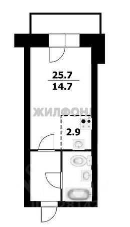 Общая площадь квартиры составляет 25,6 кв.м. ( без учета лоджии )