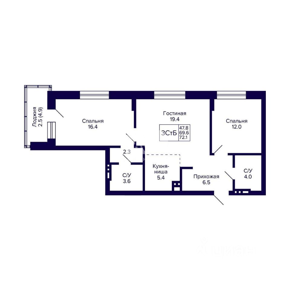 69,6 м²