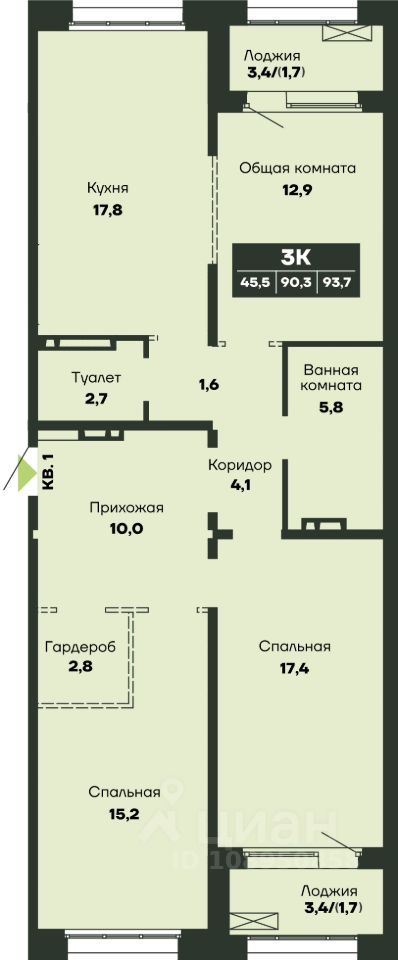 Продаётся 3-комнатная квартира в строящемся доме (Дом 4), срок сдачи: III-кв. 2027, общей площадью 93.7 кв.м., на 11 этаже. Новый жилой комплекс "Гренландия" от Группы компаний "Союз" расположен в Калининском районе Новосибирска на ул. Тюленина.